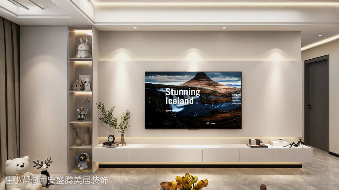 今天小編發(fā)的是2023年比較網紅款式的電視背景墻,懸空的電視柜,加上中部凸起的電視墻+上燈帶條,讓電視墻有著不一樣的簡約感,貼近當代人的優(yōu)雅風哈。